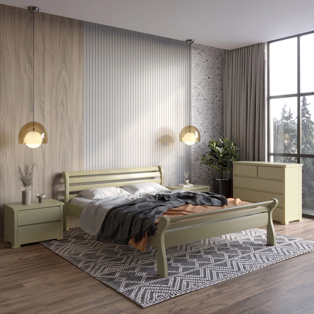 Двоспальне дерев'яне ліжко Mebigrand Верона Оливковий (RAL1020) 140х200 см (MBG-4509)