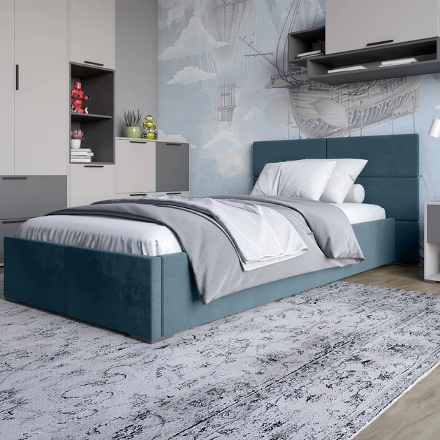 Односпальне ліжко LION Краш Лілі 84 велюр (Блакитний) 90х200 см (LION-044164)