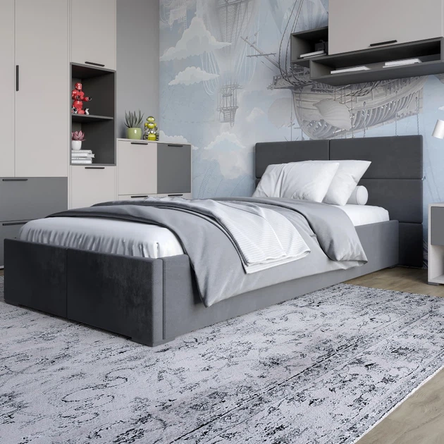 Односпальне ліжко LION Краш Лілі 95 велюр (Сірий) 90х200 см (LION-044165)