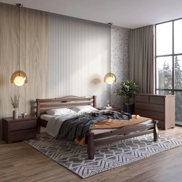 Односпальне дерев'яне ліжко Mebigrand Монако Горіх лісовий 90х200 см (MBG-4239)