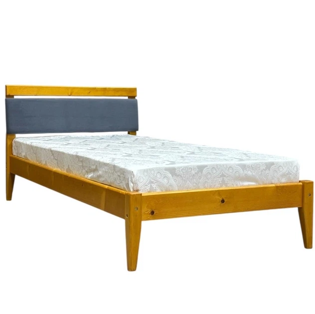 Односпальне дерев'яне ліжко з м'якою вставкою Скіф Л-157 бурштин / твіст-1 / 90х200