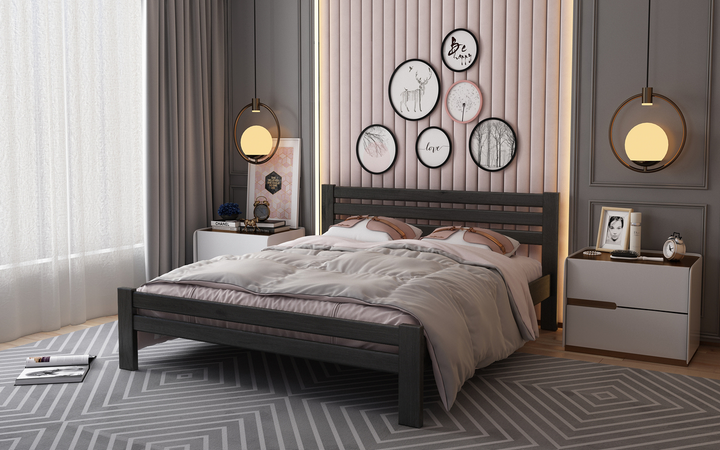 Двоспальне дерев'яне ліжко Mebigrand Техас Графітовий (RAL9011) 180х200 см (MBG-7006)