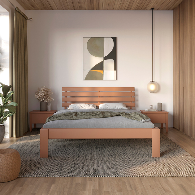Двоспальне дерев'яне ліжко Mebigrand Техас Коричневий (RAL8025) 180х200 см (MBG-7012)