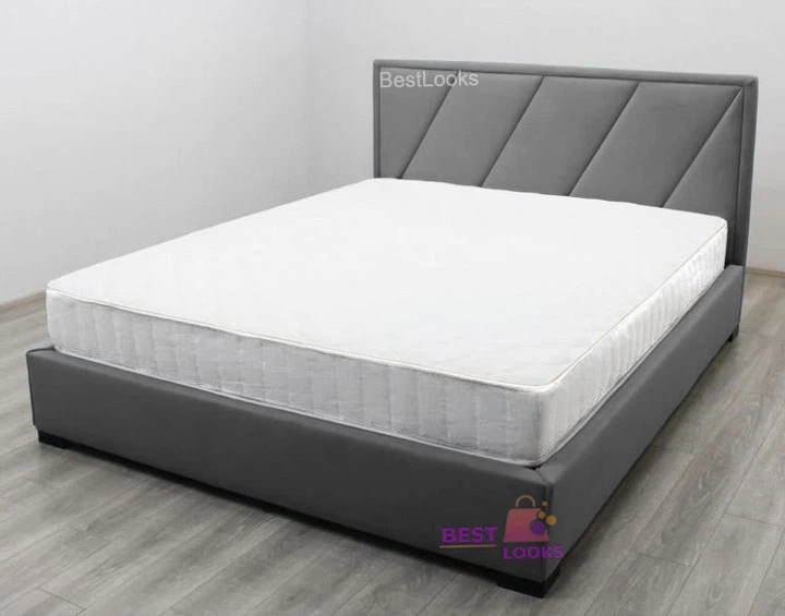 Ліжко полуторне 140x190 Кліо-1 Mebel-Day з підйомним механізмом Велюр Сірий Канна (95)