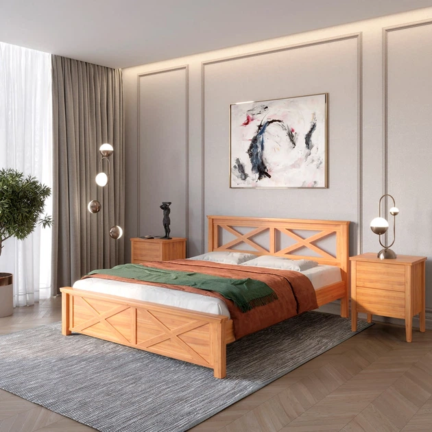 Ліжко дерев'яна яні двоспальне НеоМеблі Лагуна 180х190 яблуня