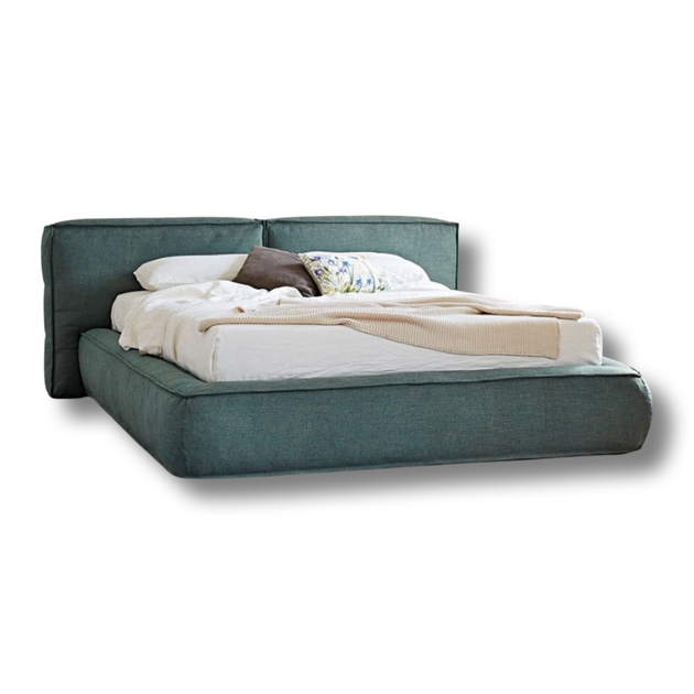 Ліжко з м'якою спинкою двоспальне MeBelle PLAYA 180х200 см з підйомним, зелений шеніл, рогожка, стиль лофт