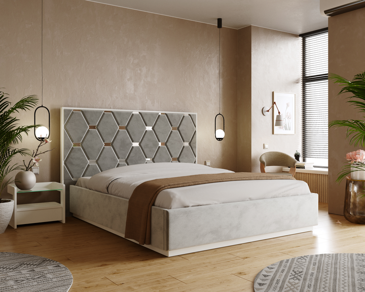 Ліжко двоспальне 180х200 з підйомним механізмом без матраца Олівія Арбор Древ Білий/Світло-сірий