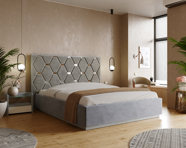 Ліжко двоспальне 180х200 з підйомним механізмом без матраца Олівія Арбор Древ Сірий (натуральне дерево бук/тканина велюр Лаг