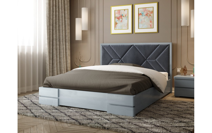 Ліжко двоспальне з натурального дерева бук 180х200 з підйомним механізмом Тифані Сірий Арбор Дерево