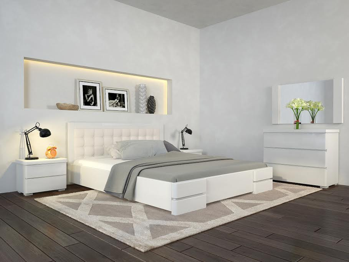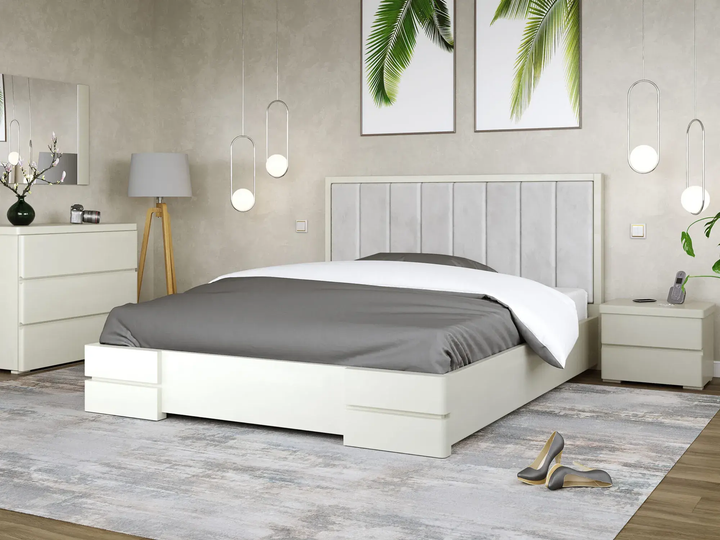 Ліжко двоспальне з натурального дерева бук 180х200 з підйомним механізмом Мілано Білий Арбор Дерево
