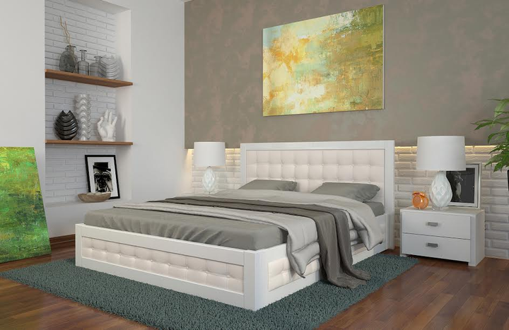 Ліжко двоспальне з натурального дерева бук 180х200 з підйомним механізмом Тифані Білий Арбор Дерево
