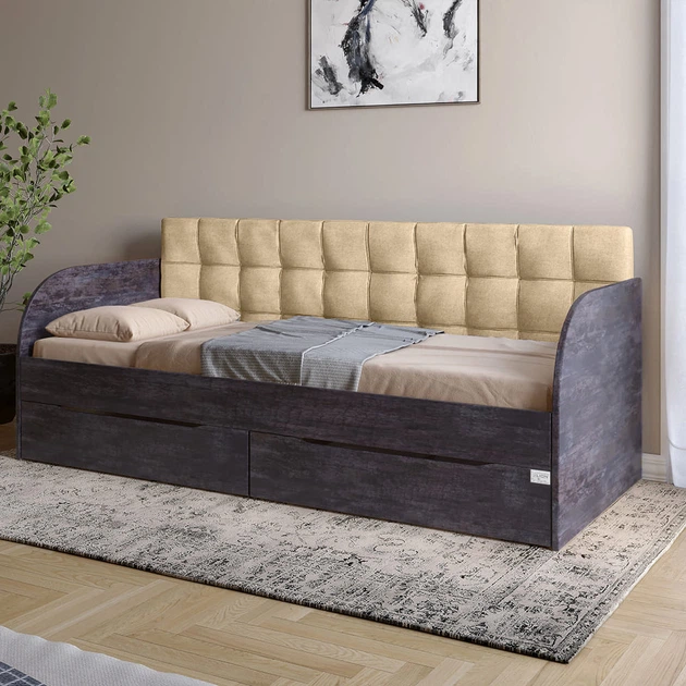 Дитяче односпальне ліжко LION Л-7 з шухлядами та ламелями Лілі-02 (бежевий) 80x190 см Бетон темний (LION-045070)