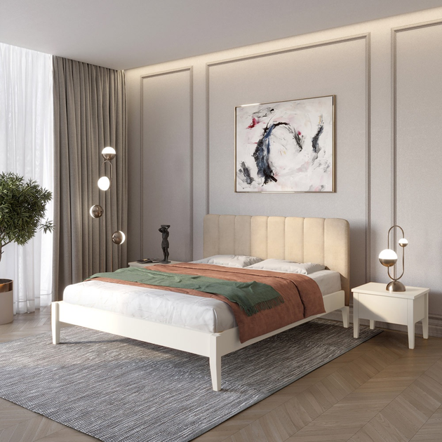 Односпальне дерев'яне ліжко Mebigrand Венеція ДК Білий (RAL9003)/Аляска 23 (Бежевий) 90х190 см (MBG-5777)