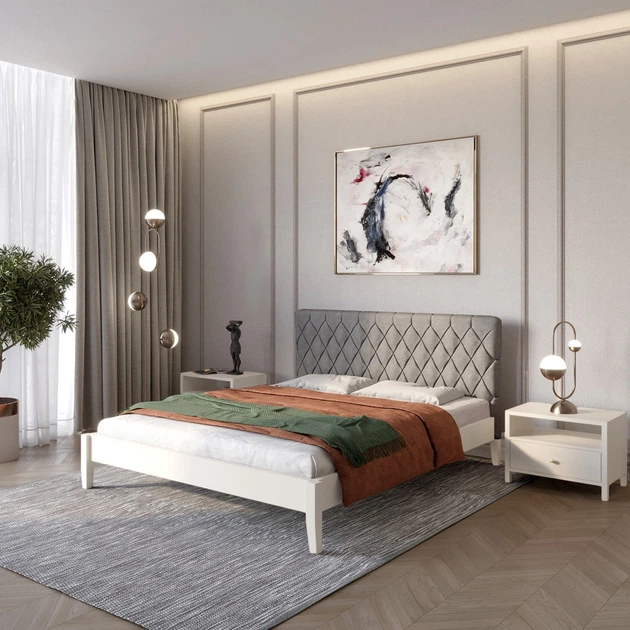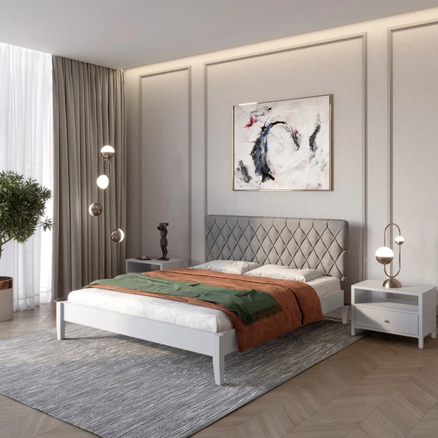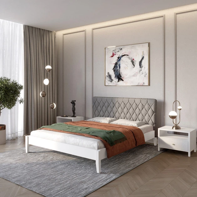 Односпальне дерев'яне ліжко Mebigrand Лондон ДК Білий (RAL9003)/Аляска 93 (Сірий) Б1 80х190 см (MBG-6881)
