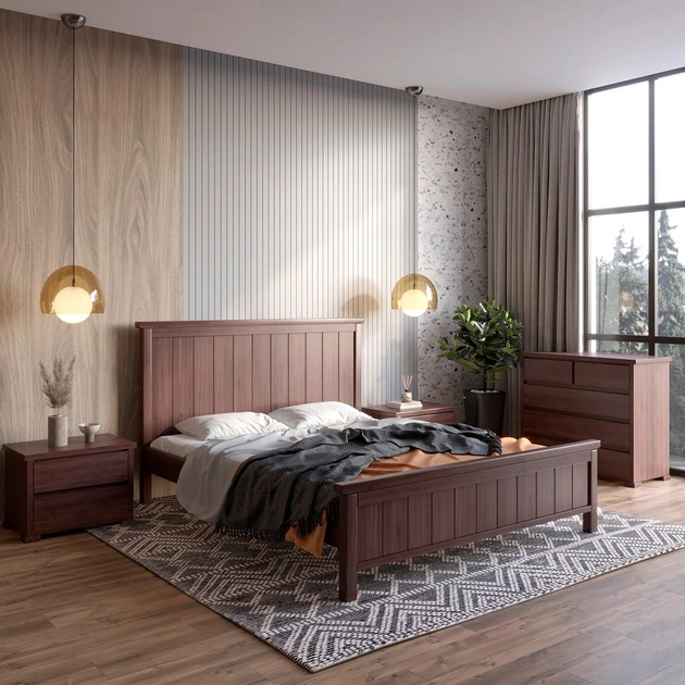 Двоспальне дерев'яне ліжко Mebigrand Вірджинія Горіх лісовий 180х190 см (MBG-3202)