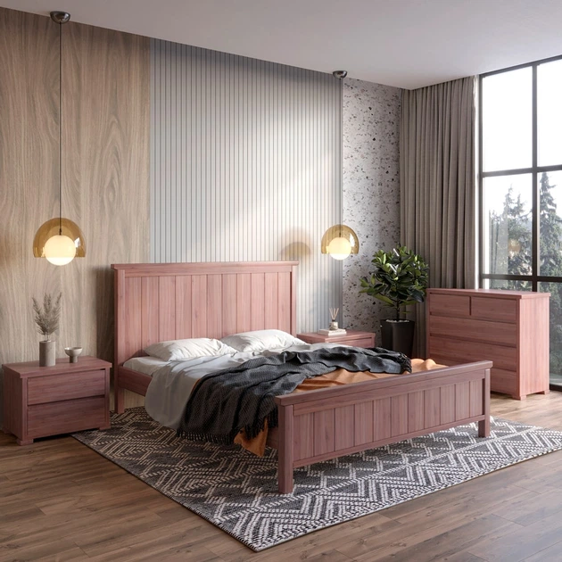 Двоспальне дерев'яне ліжко Mebigrand Вірджинія Яблуня 180х190 см (MBG-3190)