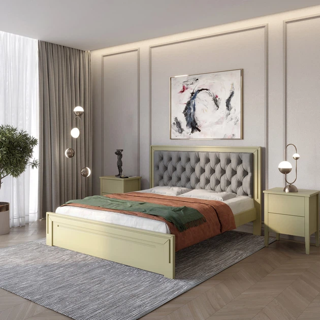Односпальне дерев'яне ліжко Mebigrand Торонто Т3 Оливковий (RAL1020)/Аляска 93 (сірий) 80х200 см (MBG-8272)