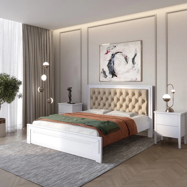 Односпальне дерев'яне ліжко Mebigrand Торонто Т6 Айворі (S0505Y30R)/Аляска 23 (бежевий) 90х190 см (MBG-9487)