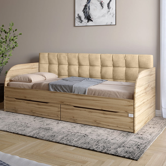 Дитяче односпальне ліжко LION Л-7 з шухлядами та ламелями Лілі-02 (бежевий) 90x190 см Дуб сонома трюфель (LION-045090)