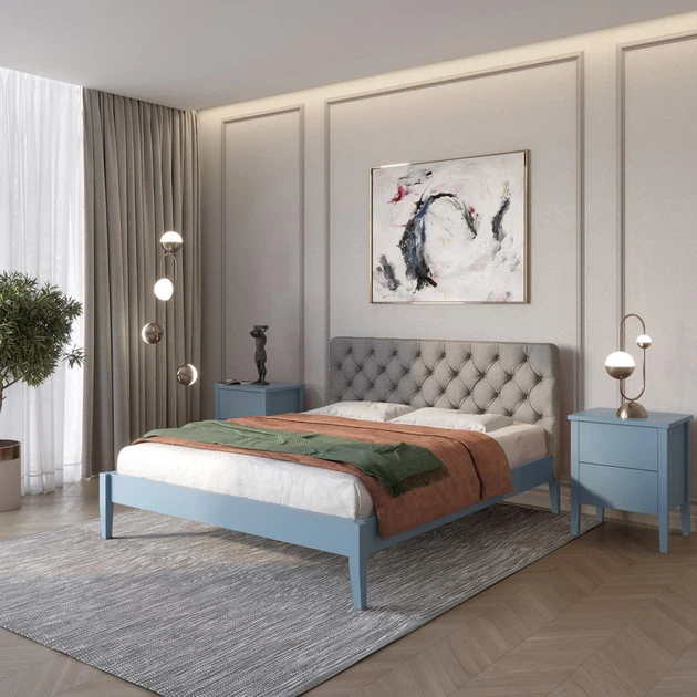 Двоспальне дерев'яне ліжко Mebigrand Рим ДК Сіро-синій (S7010R90B)/Аляска 93 (Сірий) Б3 180х190 см (MBG-5338)