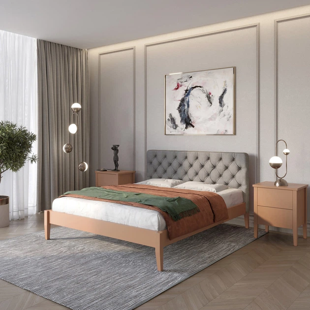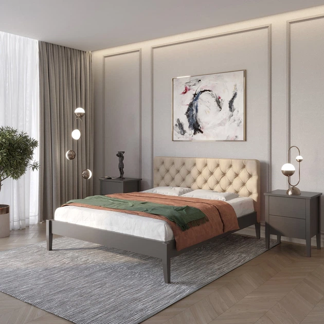 Двоспальне дерев'яне ліжко Mebigrand Рим ДК Графітовий (RAL9011) /Аляска 23 (Бежевий) Б3 180х190 см (MBG-5108)