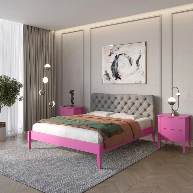 Двоспальне дерев'яне ліжко Mebigrand Рим ДК Рожевий (S2060R30B)/Аляска 93 (Сірий) Б3 180х190 см (MBG-5282)