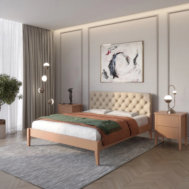 Двоспальне дерев'яне ліжко Mebigrand Рим ДК Коричневий (RAL8025)/Аляска 23 (Бежевий) Б3 180х190 см (MBG-5080)