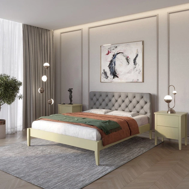 Двоспальне дерев'яне ліжко Mebigrand Рим ДК Оливковий (RAL1020)/Аляска 23 (Бежевий) Б3 180х190 см (MBG-5136)