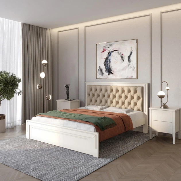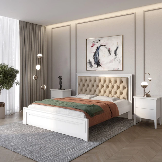 Односпальне дерев'яне ліжко Mebigrand Торонто Т3 Білий (RAL9003)/Аляска 23 (бежевий) 90х200 см (MBG-7432)