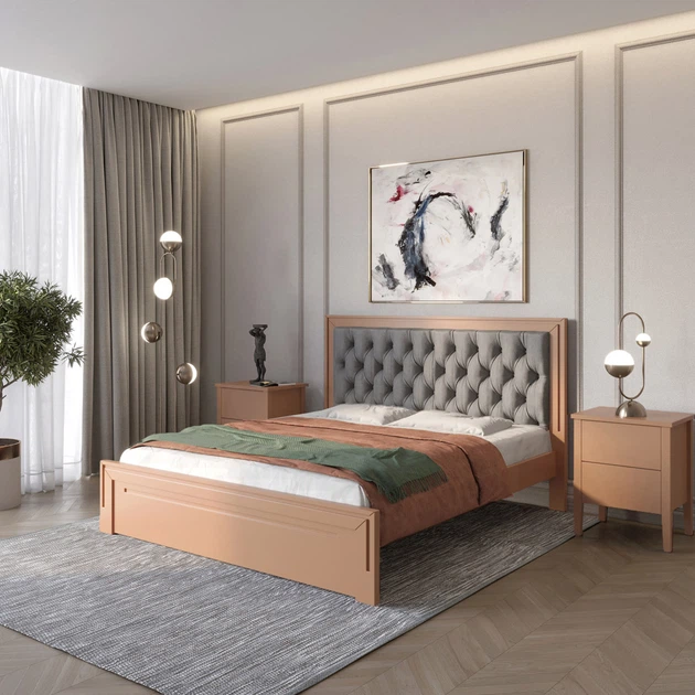 Односпальне дерев'яне ліжко Mebigrand Торонто Т6 Бежевий (S2005Y50R)/Аляска 93 (сірий) 90х200 см (MBG-9584)