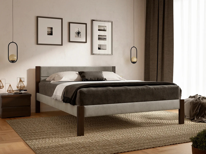 Ліжко двоспальне з натурального дерева сосна Верона MebiGrand в спальню 180x200 Горіх темний