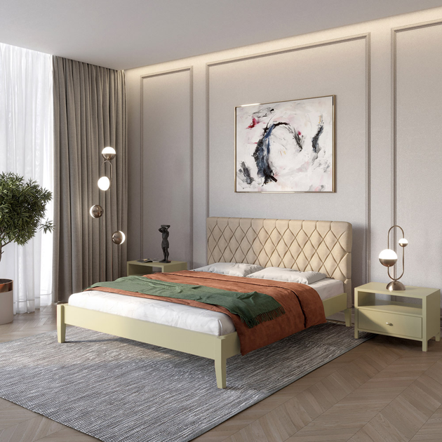 Односпальне дерев'яне ліжко Mebigrand Венеція ДК Оливковий (RAL1020)/Аляска 23 (Бежевий) 90х190 см (MBG-5859)