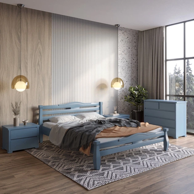 Двоспальне дерев'яне ліжко Mebigrand Монако Сіро-синій (S7010R90B) 180х190 см (MBG-4405)