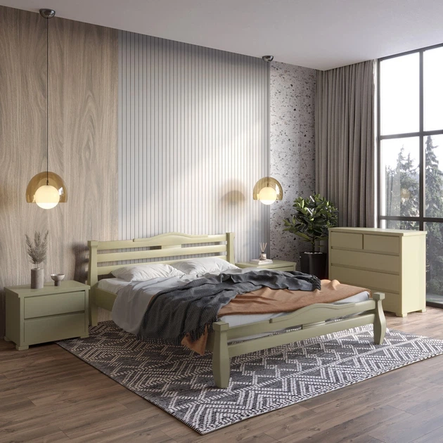 Двоспальне дерев'яне ліжко Mebigrand Монако Оливковий (RAL1020) 180х190 см (MBG-4285)
