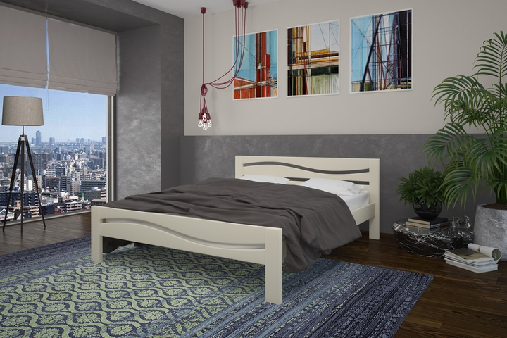 Ліжко двоспальне 180х200 Прага MebiGrand RAL7040 Світло-сірий (натуральне дерево) (з ламелями/без матраца)
