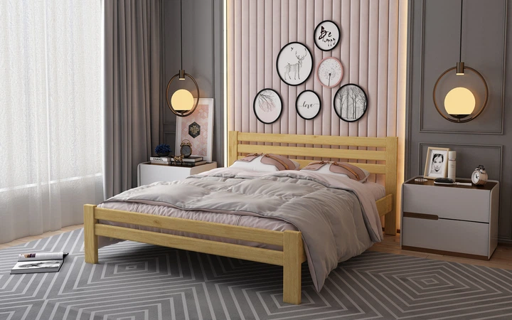 Двоспальне дерев'яне ліжко Mebigrand Палермо Бежевий (S2005Y50R) 140х200 см (MBG-11432)
