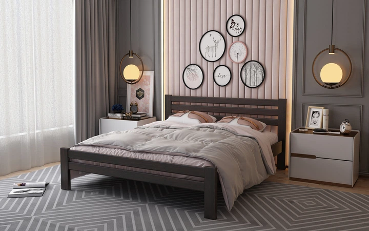 Ліжко із натурального дерева сосна Прем'єра 140x200 горіх темний Stemma