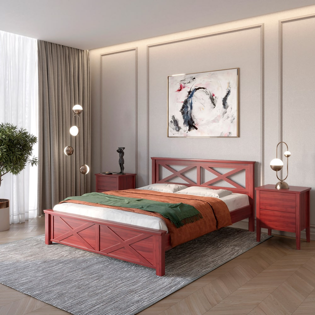 Двоспальне ліжко з масиву вільхи Палермо плюс 180х200 Барвник Tin 124 червоний Крок ламелів 2,5