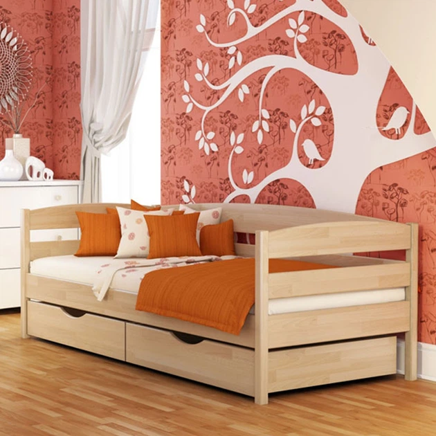 Ліжко односпальне в дитяче з натурального дерева Мартель 80х200 з бортиком та ящиками бук Luna (без матраца)