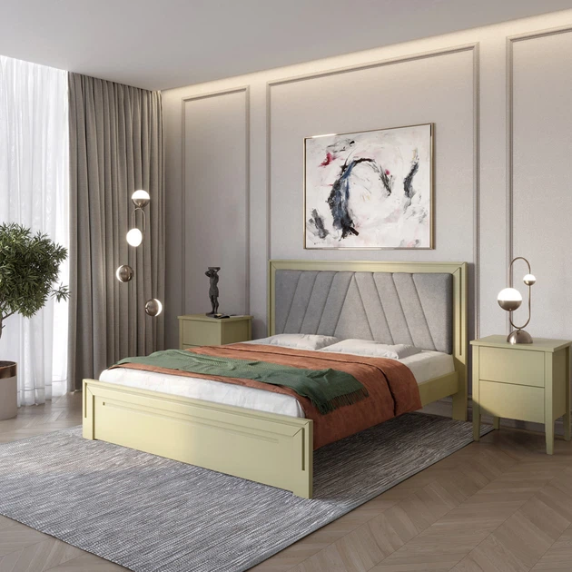 Односпальне дерев'яне ліжко Mebigrand Торонто Т6 Оливковий (RAL1020)/Аляска 93 (сірий) 90х200 см (MBG-9779)