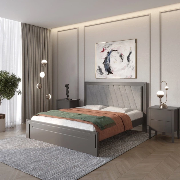 Односпальне дерев'яне ліжко Mebigrand Торонто Т6 Графітовий (RAL9011)/Аляска 93 (сірий) 90х200 см (MBG-9723)