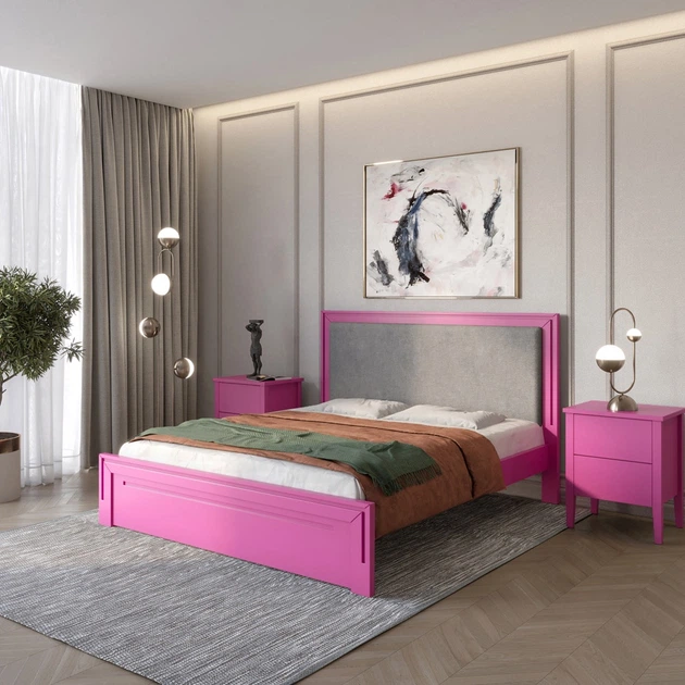 Односпальне дерев'яне ліжко Mebigrand Торонто Т6 Рожевий (S2060R30B)/Аляска 93 (сірий) 90х190 см (MBG-9417)