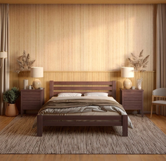 Полуторне дерев'яне ліжко Mebigrand Прем'єра Горіх темний 120х190 см (MBG-2771)