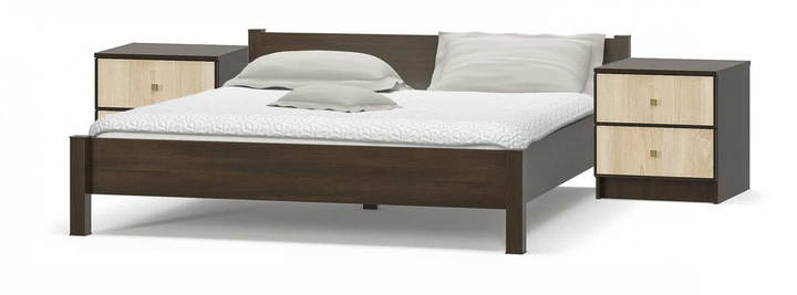 Ліжко Мебель Сервіс Фантазія 160х200 + 2 приліжкові тумби (ламелі) Венге темний + Дуб самоа