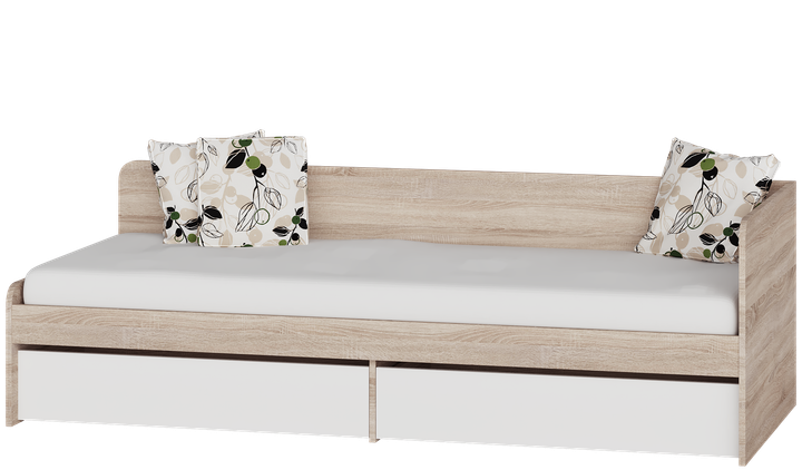 Ліжко з ящиками та матрацом Еверест Соната 800 194х84х61 см Комбі Сонома Білий