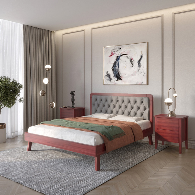 Односпальне дерев'яне ліжко Mebigrand Токіо Махонь/Аляска 93 (Сірий) 80х200 см (MBG-11182)