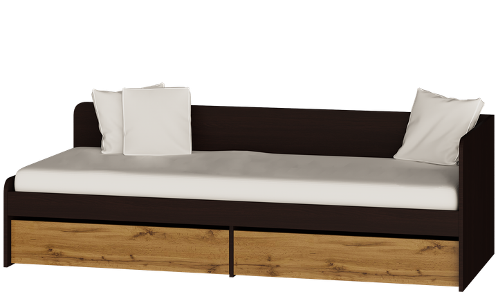 Ліжко з ящиками та матрацом Еверест Соната 800 194х84х61 см Комбі Венге темний Дуб крафт золотий