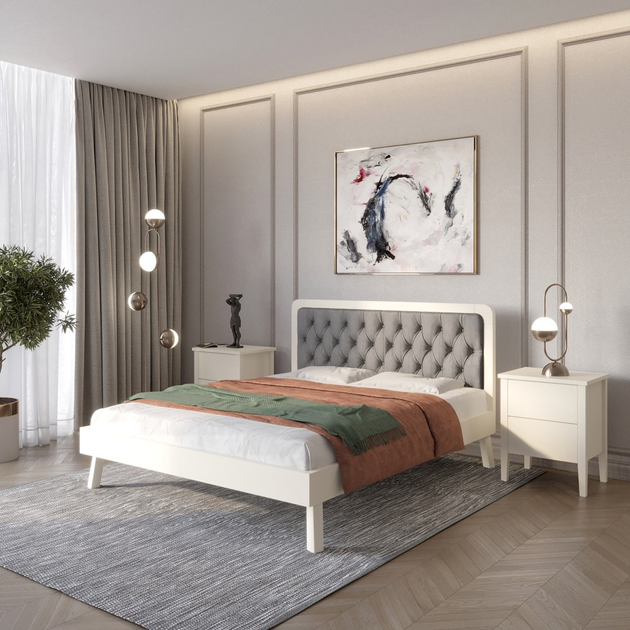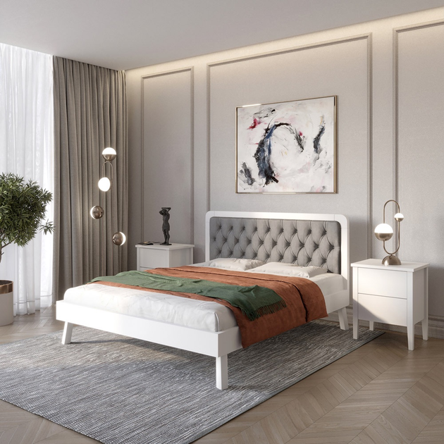 Односпальне дерев'яне ліжко Mebigrand Токіо Білий (RAL9003)/Аляска 93 (Сірий) 90х190 см (MBG-11221)