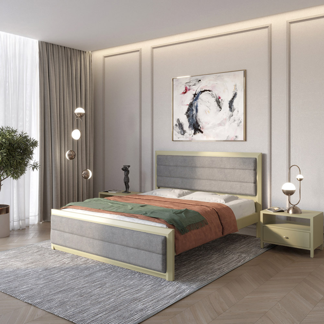 Односпальне дерев'яне ліжко Mebigrand Барселона Б6 Вільха/Аляска 23 (Бежевий) 90х200 см (MBG-13263)