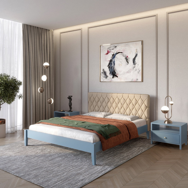 Односпальне дерев'яне ліжко Mebigrand Венеція ДК Сіро-синій (S7010R90B)/Аляска 23 (Бежевий) 80х200 см (MBG-5817)